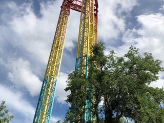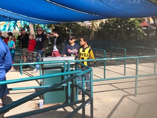 Keep your head up, don't be looking at the ground otherwise when the ride starts, your head will be stuck between your knees until it drops back down.