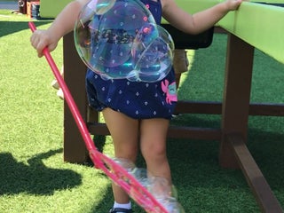 The bubble activity center is very popular with the kids - located outside under shade!