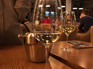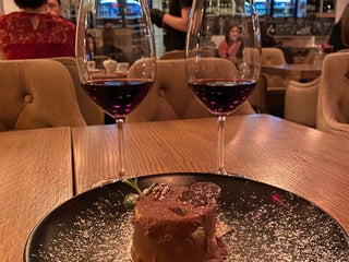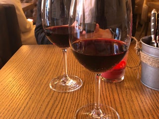 Огромный выбор вин по бокалам, приятные стейки и отменные паштеты