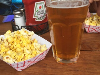 Tall frosty beers, salty popcorn and decent apps and entrees.