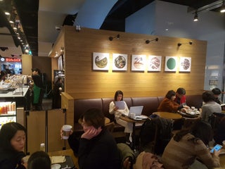 デパートの室内にある。小さなコーヒーが400円。めっちゃ高い。