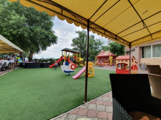 Отличная возможность для родителей с детьми спокойно посидеть в то время, как деть будет резвиться рядом. даже аниматор есть :)