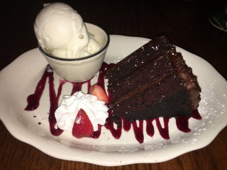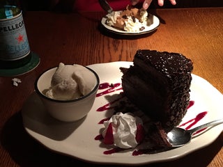 I so enjoyed my porter house steak and loaded baked potato. It was already gone so I took a pic of the desert. Triple chocolate cake with ice cream. Yummylicious!!