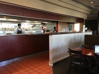 Don't eat here if you are in a hurry and it's busy. There's no table service - otoh have to stand in line to order food then again for drinks. Totally disorganized!