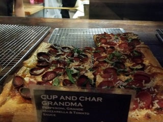 would opt for the regular grandma (four dollars) over the pepperoni “cup and char” grandma (four dollars and seventy five cents) next time. Good pizza but not THAT good, and expensive