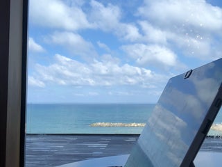 Recently renovated. Comfortable rooms and amazing service. Great location with private beach. Ahava amenities (shampoo, lotion, etc) in the rooms. Bus #55 goes to/from the train station from Hilton.