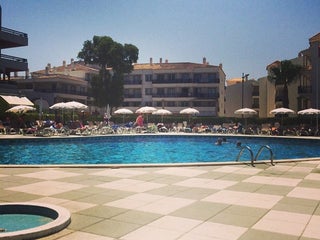 Excelente localização, a 5 m da praia, piscina grande com bastante gente, área de jardins muito boa. Ideal para famílias com crianças. Perto do centro das ruas principais de bares e lojas.
