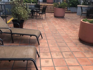 There are several BBQ's and picnic tables in the courtyard and a Trader Joe's next door. Do the math :)