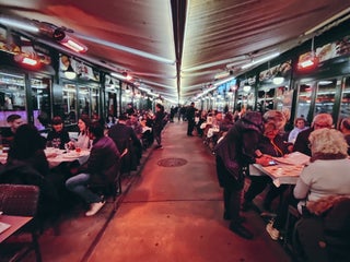 Не только прикупить. Но и пообедать или поужинать. Отдельный ряд милых кафе, где готовят из свежих продуктов тут же с рынка